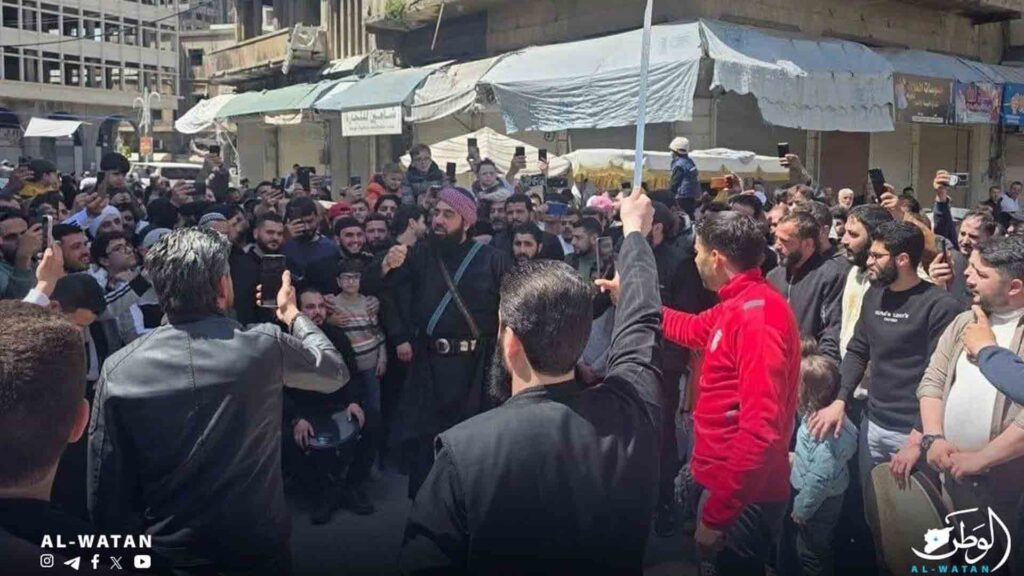 ورصد مراسل “الوطن” خروج المئات من المدنيين من مسجد (الزبير) في حي التضامن هتفوا للعدالة وبشعارات التحية لقوى الأمن الداخلي وجهودهم التي أثمرت عن الوصول إلى المجرم بعد ترقب وتخطيط محكم ، وقرؤوا الفاتحة على أرواح الشهداء الذين قضوا في المجزرة المروعة.