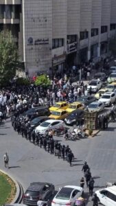 شهدت ساحة المحافظة في العاصمة دمشق اليوم الجمعة تجمع عشرات المواطنين بتوجهات مختلفة في وقفة احتجاجية، قالوا عنها إنها صامتة تحمل مطالب معيشية، وحملت عدداً من الشعارات والعبارات التي تندد بالوضع الاقتصادي والمعيشي وتطالب بإيجاد حلول، في وقت شهدت الوقفة الاحتجاجية حضوراً للأمن الداخلي لحماية المحتجين وضمان حق التظاهر بكل حرية.