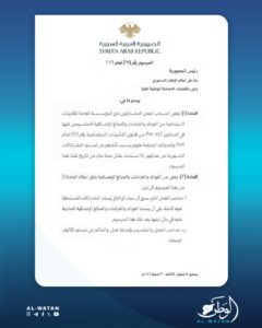 أصدر رئيس الجمهورية أحمد الشرع المرسوم رقم (29) لعام 2026، القاضي بإعفاء أصحاب العمل المشتركين لدى المؤسسة العامة للتأمينات الاجتماعية من الفوائد والغرامات والمبالغ الإضافية المنصوص عليها في المادتين /74-77/ من قانون التأمينات الاجتماعية رقم (92) لعام 1959 وتعديلاته، المترتبة عليهم بسبب تأخرهم عن تسديد الاشتراكات الشهرية عن عمالهم، إذا سُدِّدت خلال مدة عام من تاريخ نفاذ هذا المرسوم.