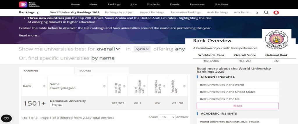 11 ألف طالب عربي وأجنبي في جامعة دمشق أكثرهم من لبنان والعراق … «دمشق» تحفر اسمها في «التايمز البريطاني» وتضمن اعتراف دول أوروبا بشهاداتها