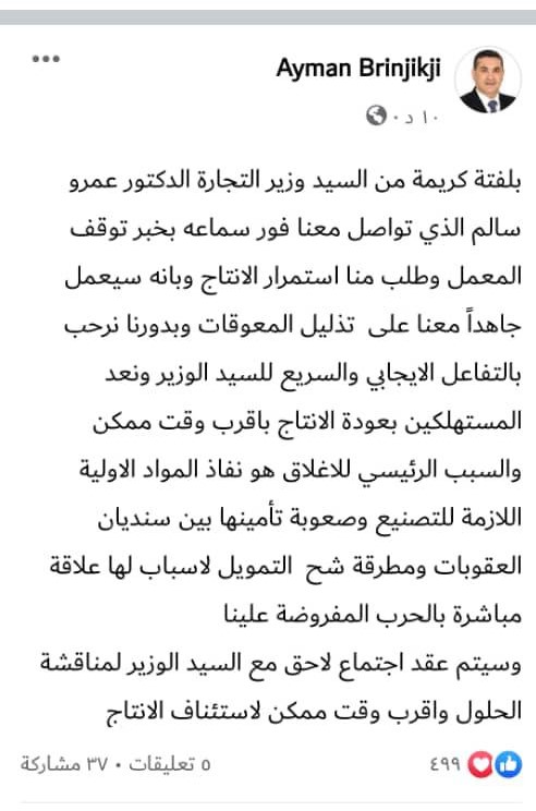 صاحب معمل «أندومي» يعود عن قراره بعد تلقي اتصال