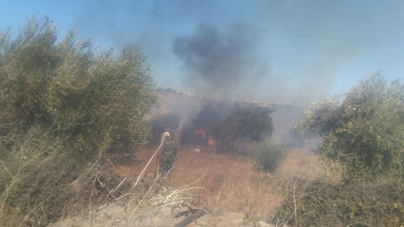 إخماد حريق على امتداد 4 دونمات بأشجار زيتون في أراضي جب البستان بريف حمص الغربي