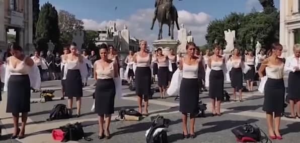 احتجاجاً على فصلهن.. مضيفات طيران يخلعن ملابسهن في إيطاليا