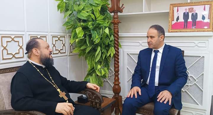 محافظ الحسكة يلتقي المدير العام لدائرة العلاقات المسكونية والتنمية في بطريركية الروم الأرثوذكس ويناقش معه احتياجات الواقع الإنساني بالمحافظة