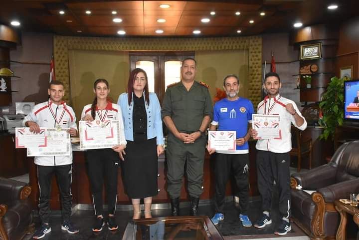 قائد شرطة حماة يكرم أبطال نادي الشرطة بالبطولة العربية للكيك بوكسينغ