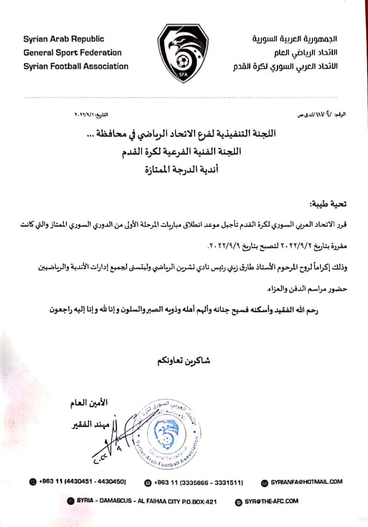 الموت يغيب رئيس نادي تشرين الكابتن طارق زيني