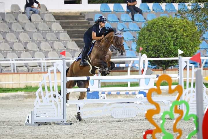 الفارسة ٱية حمشو بطلة فئة ميديوم تور في بطولة الجيش السابعة لقفز الحواجز 2022