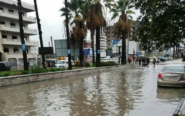 “بحيرات مائية” في الشوارع نتيجة الأمطار في اللاذقية