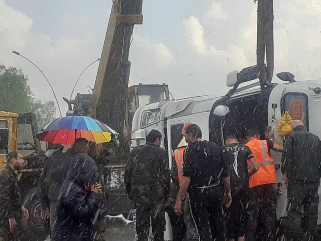 إنقاذ سائق شاحنة بعد حادث خطير على طريق اللاذقية حمص