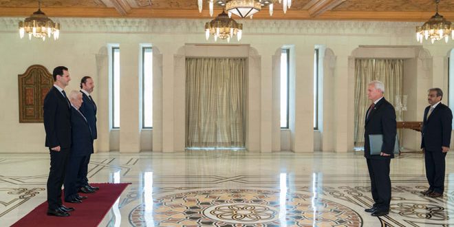 الرئيس الأسد يتقبل أوراق اعتماد راشد كمال سفيرا لباكستان لدى سورية