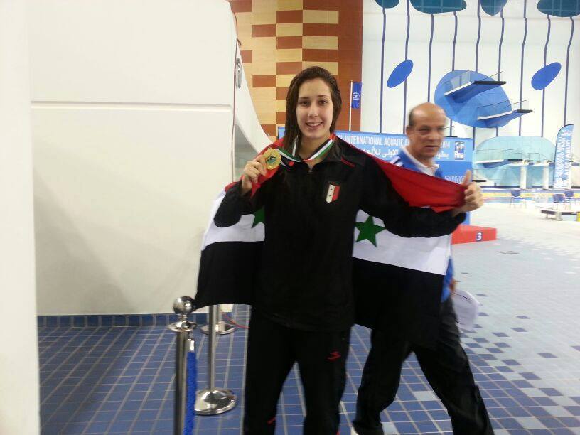 توجت لاعبة منتخب سورية للسباحة بيان جمعة اليوم بالميدالية الذهبية لسباق 100 متر حرة في…
