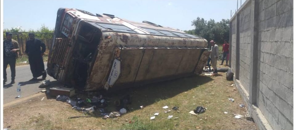 إصابة 16 راكباً بتدهور سرفيس بريف سلمية الشرقي
