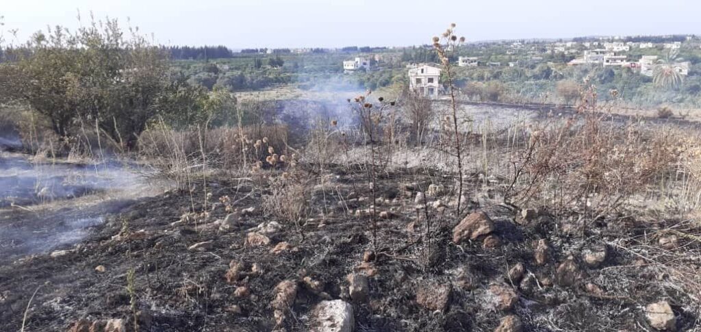 حريق بحوالي 12 دونم في منطقة فدره باللاذقية