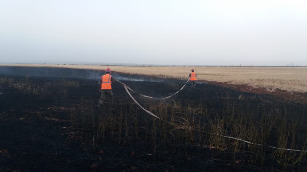 إخماد حريق بمحاصيل زراعية على طريق حمص _ حماة قبل امتداده إلى باقي الحقول