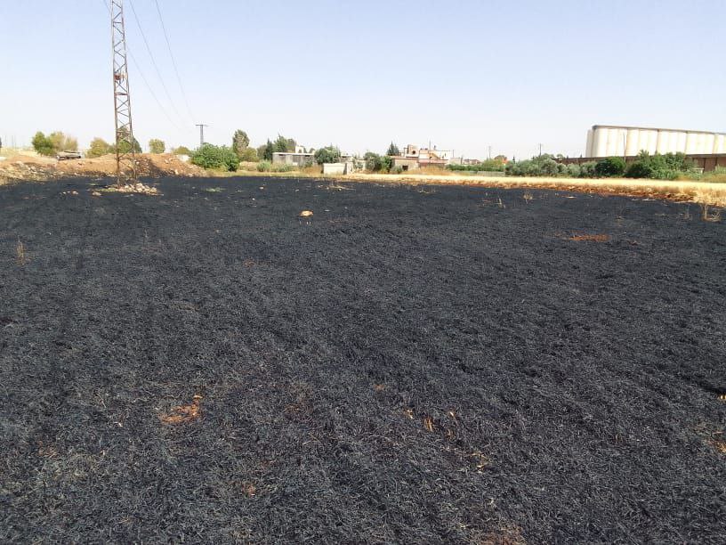 إخماد حريق على امتداد 25 دونم بمحاصيل زراعية في منطقة القصير بريف حمص الجنوبي الغربي