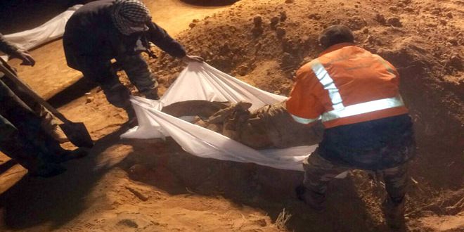 إخراج 115 جثمانا لشهداء من مقابر جماعية في ريف الرقة