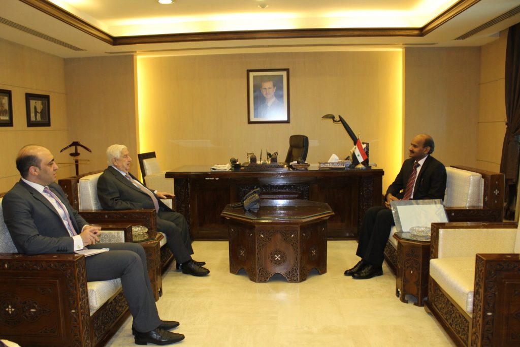 المعلم يتسلم نسخة من أوراق اعتماد سفير الهند الجديد لدى سورية