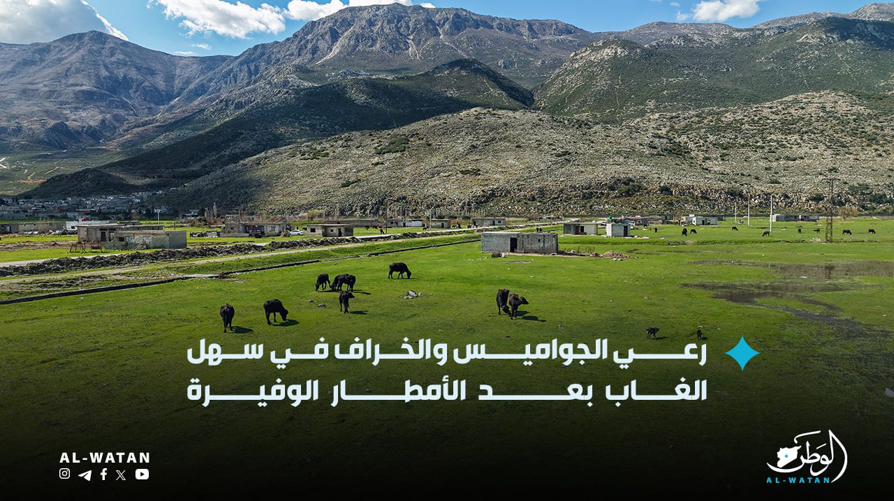 رعي الخراف والجواميس في سـهل الغـاب بعد الأمطار الوفيرة